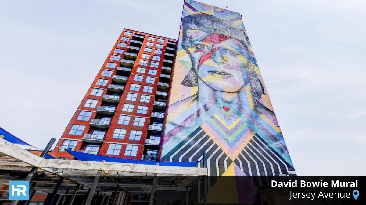It started with a face — David Bowie’s, staring back at me from a brick wall on Jersey Avenue. I’d seen photos of the mural countless times online, usually cropped and filtered, but standing in front of it felt different. The paint had faded slightly, edges softened by weather and time, yet the energy was still there. It wasn’t pristine, and that was exactly the point.